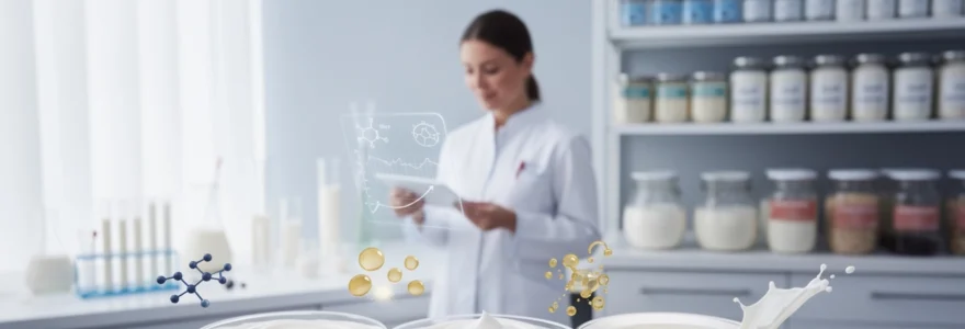 qui améliorent la texture et contribuent à l’effet prébiotique. Ces polymères naturels stimulent sélectivement la croissance des bifidobactéries intestinales bénéfiques. La maturation enzymatique optimise également la digestibilité des protéines en créant des sites de clivage préférentiels pour les peptidases intestinales.
